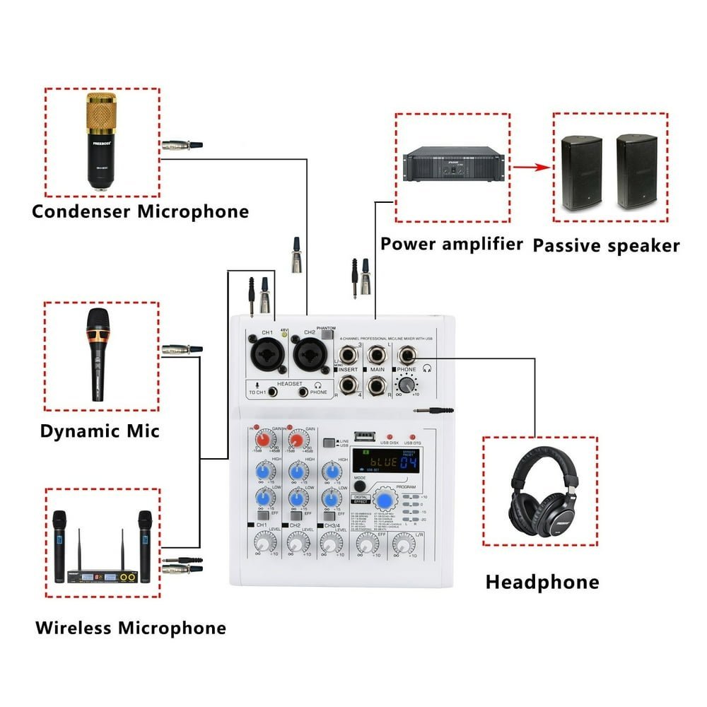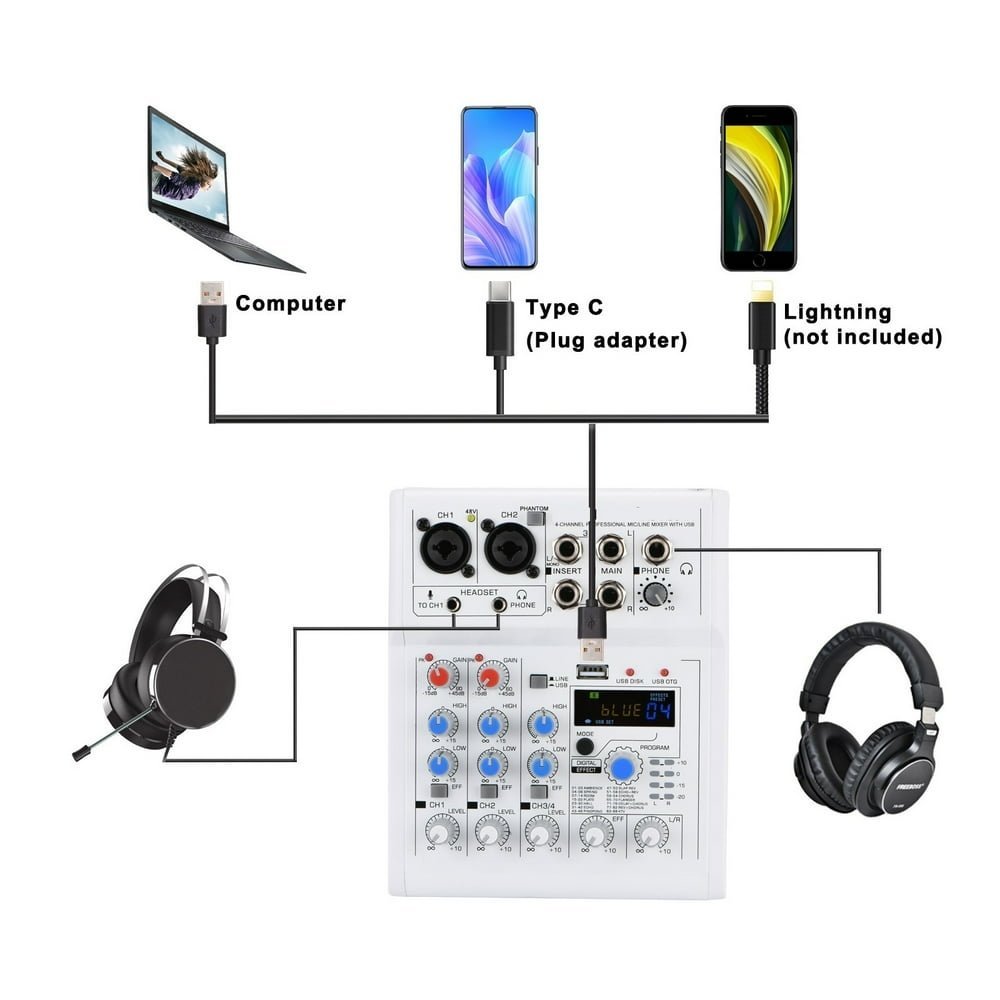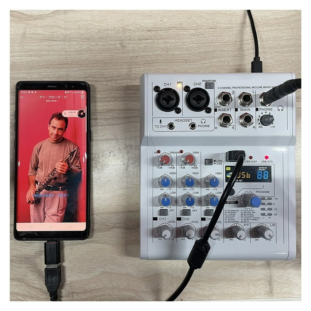 • You can connect your phone to mixer via 1/4″ jack.