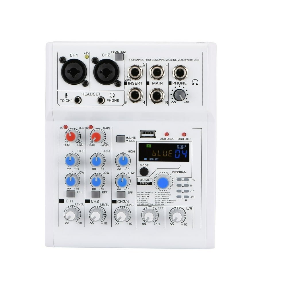 4-Channel DC 5V Mobile/Computer USB Play & Record Mixer (88 DSP Effects)